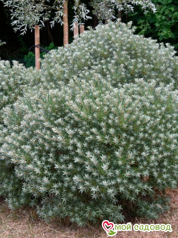 Саженцы облепихи «Хикул» (Hikul) вырастают в кустарник, который отличается своим внешним видом: шаровидная форма с толстой кроной декоративного оттенка. Зацветает он в мае, но цветочки настолько мелкие, что теряются на фоне серебристой листвы. Крупномеры облепихи «Хикул» отличаются от других сортов еще и тем, что они не дают никакого урожая и являются чисто декоративными кустами. В высоту они достигают максимум полтора метра. Саженцы облепихи «Хикул» нужно высаживать в увлажненную, но не сильно, почву с хорошим дренажем. Ухаживать за растением просто: удобрять не обязательно, от ветров защищать не надо, весной отрезайте сухие ветки и побеги. Морозные зимы переносит хорошо.